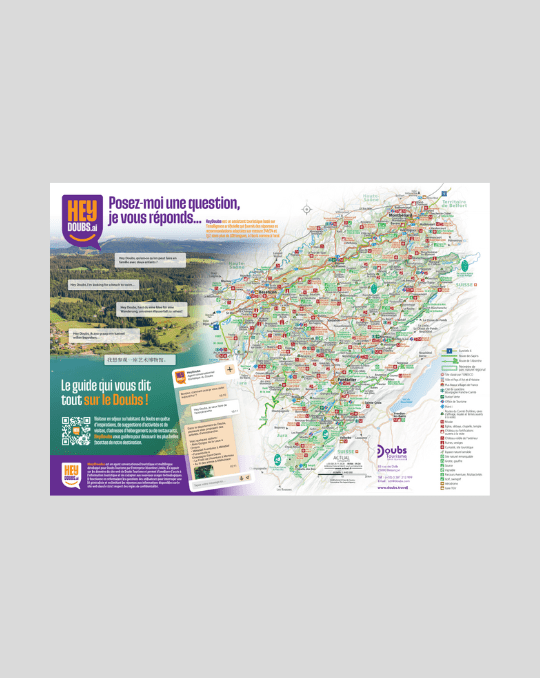 DoubsCart&Mag est à la fois une carte routière et un magazine touristique. Il permet aux visiteurs et aux habitants du Doubs de préparer leurs prochaines excursions dans le territoire. Six itinéraires sont détaillés et illustrés par des visuels et pictogrammes qui accompagnent la valorisation de 100 points d’intérêts dans tout le département.