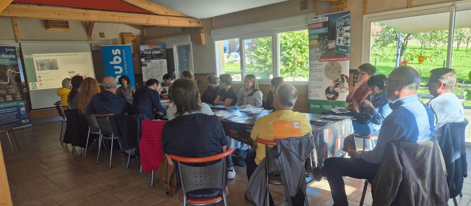 Pour fédérer les professionnels du tourisme autour de la thématique du vélo, une rencontre a été organisée par Doubs Tourisme, au gîte Le Vert Logis à La Tour-de-Sçay, pour échanger sur les actualités du label et la nouvelle politique nationale. Une vingtaine d’adhérents ont répondu présents. Cet après midi a permis également de faire un point sur les dernières informations liées au vélo dans le Doubs : schéma cyclable départemental, déploiement du réseau Points-Nœuds ou encore le développement d’outils adaptés pour les cyclotouristes telle que l’application d’activités de pleine nature “Explore Doubs”.