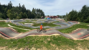 • Le pumptrack se caractérise par son circuit fermé en enrobé, béton ou terre ; il est conçu pour être parcouru sans pédaler grâce au pompage du corps.